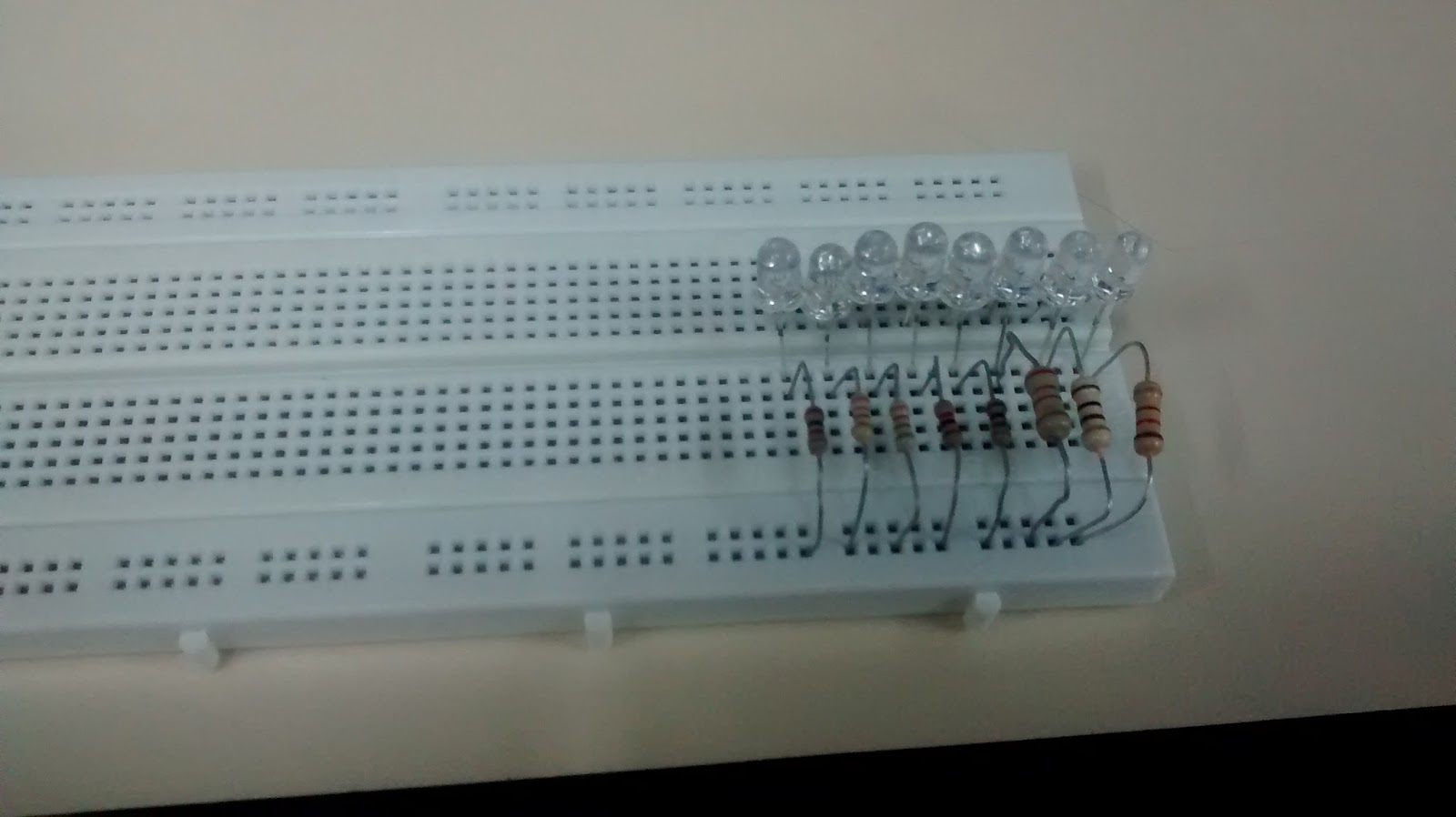 - * 8 LEDs + resistencias a los pines D2 .. D9